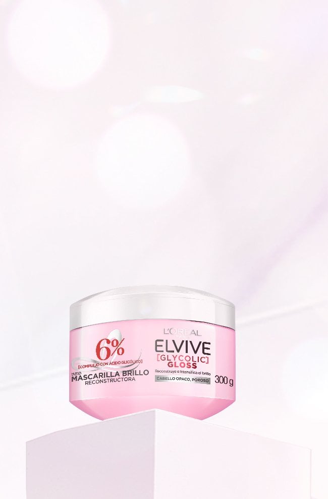 Descubre el nuevo Elvive Glycolic Gloss de L'Oréal Paris, nuestra primera línea que mejora visiblemente la calidad del pelo y le da 3x más brillo* inmediato. Está formulado con Ácido Glicólico un ingrediente activo utilizado en tratamientos skincare ahora para tu cabello. Su poderosa acción rellena los defectos de la fibra capilar, combatiendo la porosidad debido a su pH ácido y sella la cutícula para reflejar mayor luz. Utiliza la rutina completa y logra un pelo aún brillante después de 6 lavadas**.