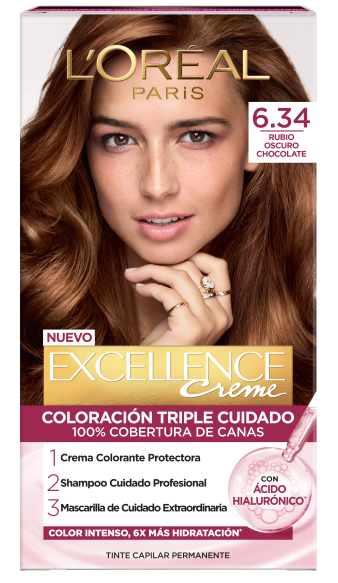 Excellence Creme de L'Oréal Paris es el tinte capilar permanente que proporciona un resultado de color perfecto y duradero con 100% cobertura de canas y triple protección. Respeta tu color, tu cabello y tu cuero cabelludo.