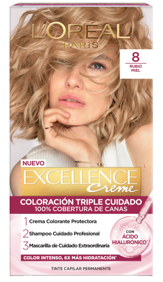 Excellence Creme de L'Oréal Paris es el tinte capilar permanente que proporciona un resultado de color perfecto y duradero con 100% cobertura de canas y triple protección. Respeta tu color, tu cabello y tu cuero cabelludo.
