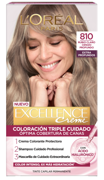 Excellence Creme de L'Oréal Paris es el tinte capilar permanente que proporciona un resultado de color perfecto y duradero con 100% cobertura de canas y triple protección. Respeta tu color, tu cabello y tu cuero cabelludo.